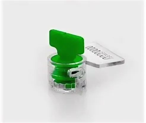 Яркий флажок выделяется выступающей рукояткой — после установки пломбы она отламывается, блокируя доступ к роторному механизму, не имеющему обратного хода;