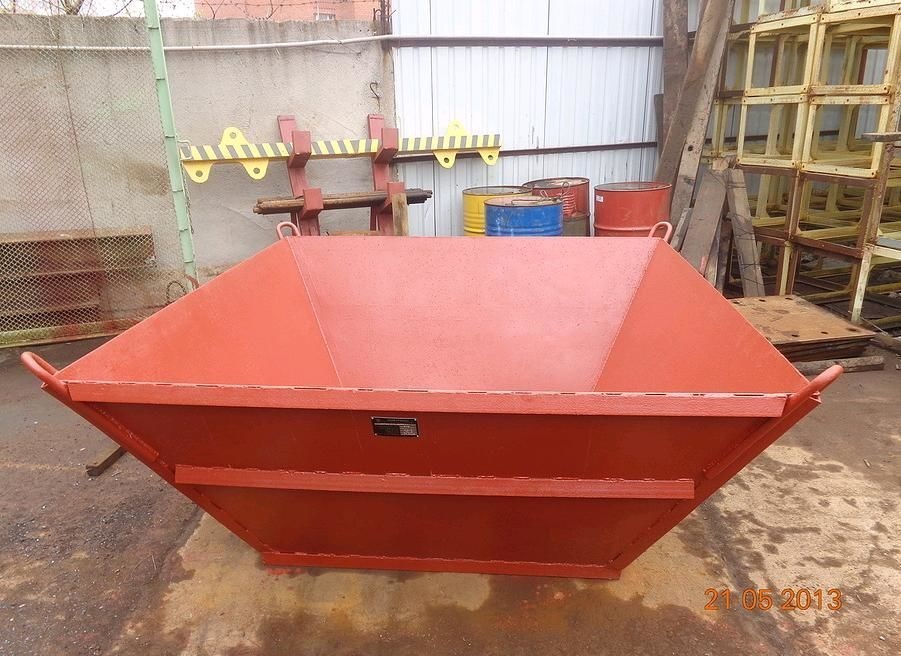 Ящик для бетона (тара для раствора) с четырьмя проушинами предназначен для хранения и транспортировки раствора с помощью крана. Ящик для раствора или ящик каменщика имеет форму усеченной пирамиды с вершиной, направленной вниз. Стенки и днище выполнены из листового металла. Прочность ящика для раствора рассчитана для транспортировки его краном. Низкая цена и высокое качество делают ящики для раствора и бетона лидерами продаж.